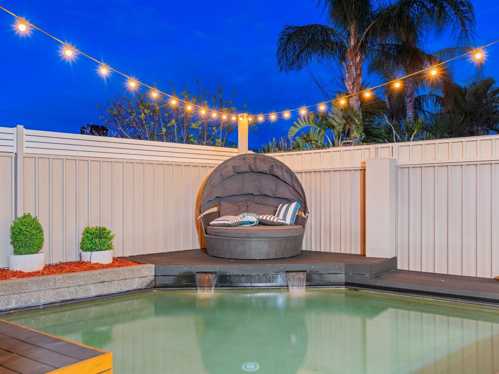 - Sun-drenched pool area with timber decking